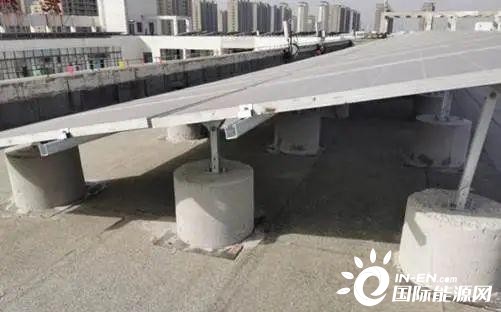 整個現場有單排10度角、雙排10或20度角、三排10度角三種安裝形式,通過抬高傾角降低組串前后排間距,方便安裝更多數量的組件。對于有坡度的屋面,還需要利用支架進行找平。
