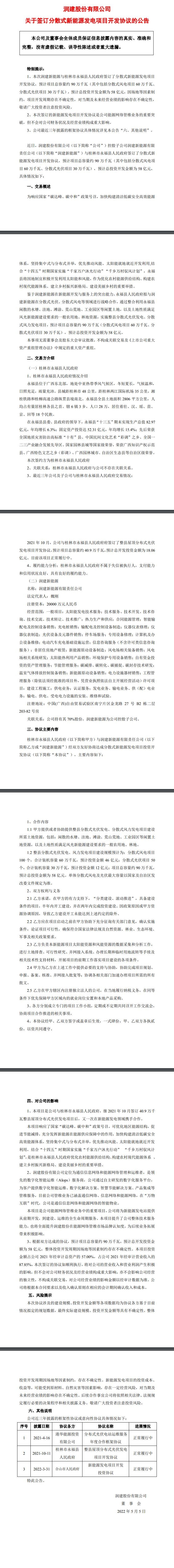 2021 年 10 月,潤建股份曾與桂林市永福縣人民政府府簽訂了整縣屋頂分布式光伏發電項目開發協議,預計項目總容量約 40.9 萬千瓦,預計總開發投資金額為 18.06億元。目前該項目正常履行中。