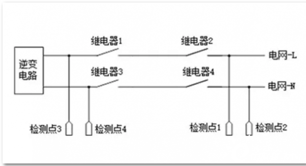如果逆變器檢測到繼電器異常,則表示繼電器各檢測點的檢測電壓對比異常。導致異常的原因可能是交流側有相線接地或交流接線有虛接,也可能是繼電器檢測電路或者繼電器本身異常導致報警。