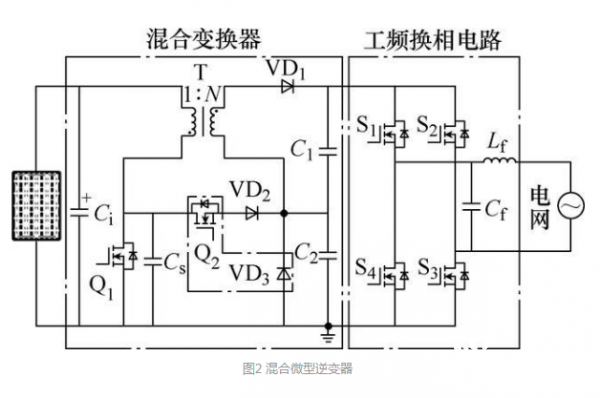 升壓-反激變換器還提供了固有的無損吸收電路,使變壓器的漏感能量得以利用,并實現了主開關管關斷電壓尖峰的鉗位。上述特性使混合逆變器具有比傳統的反激逆變器更小的變壓器體積和更高的變換器效率。文中介紹了其工作原理,同時,推導了一種參考電流數學公式,以保證高的并網電流質量。