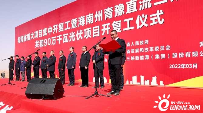 近日,在青海省2022年度重大項目集中開復工儀式上,三峽集團所屬三峽能源海南州青豫直流二期外送通道共和90萬千瓦光伏項目正式開復工。青海省政府副省長劉濤出席開復工儀式并宣布項目開復工,海南州州委書記呂剛致辭,州委副書記、州長尕瑪朋措主持開復工儀式。