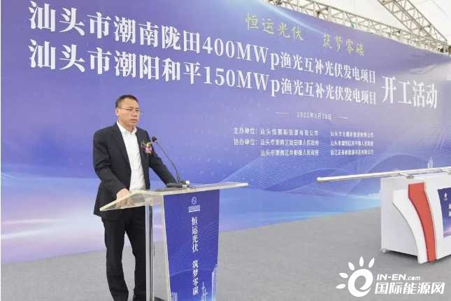 習(xí)近平總書記指出,實現(xiàn)“雙碳”目標(biāo)是一場廣泛而深刻的變革,也是一項長期任務(wù),既要堅定不移,又要科學(xué)有序推進。2022年3月28日,由恒運集團投資建設(shè)的廣東省潮南隴田、潮陽和平550MWp光伏項目舉行開工活動,汕頭市潮南區(qū)委副書記王曉韓,現(xiàn)代能源集團黨委副書記、總經(jīng)理肖立,浙江正泰新能源開發(fā)有限公司副總裁黃啟銀,恒運集團黨委委員、副總經(jīng)理周水良,恒運新能源公司董事長、汕頭恒鵬新能源有限公司執(zhí)行董事張文強以及潮南區(qū)隴田鎮(zhèn)、潮南區(qū)井都鎮(zhèn)、潮陽區(qū)和平鎮(zhèn)等領(lǐng)導(dǎo)一起推動項目啟動吉祥桿,共同見證這一喜慶時刻。