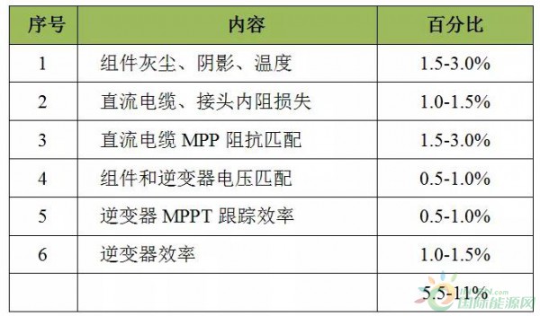 系統(tǒng)損失是綜合發(fā)電量的損失,數(shù)值根據(jù)條件在變化。影響最大功率輸出的因素是組件和直流電纜,為了提升輸出功率,必須盡量減少各種損耗。光伏安裝地點確定后,組件的安裝角度、組件溫度,逆變器本身的損耗、MPPT跟蹤效率等因素,改變較困難。但直流電纜損失、直流電纜阻抗匹配、組件和逆變器電壓匹配等因素,則是可控制的。