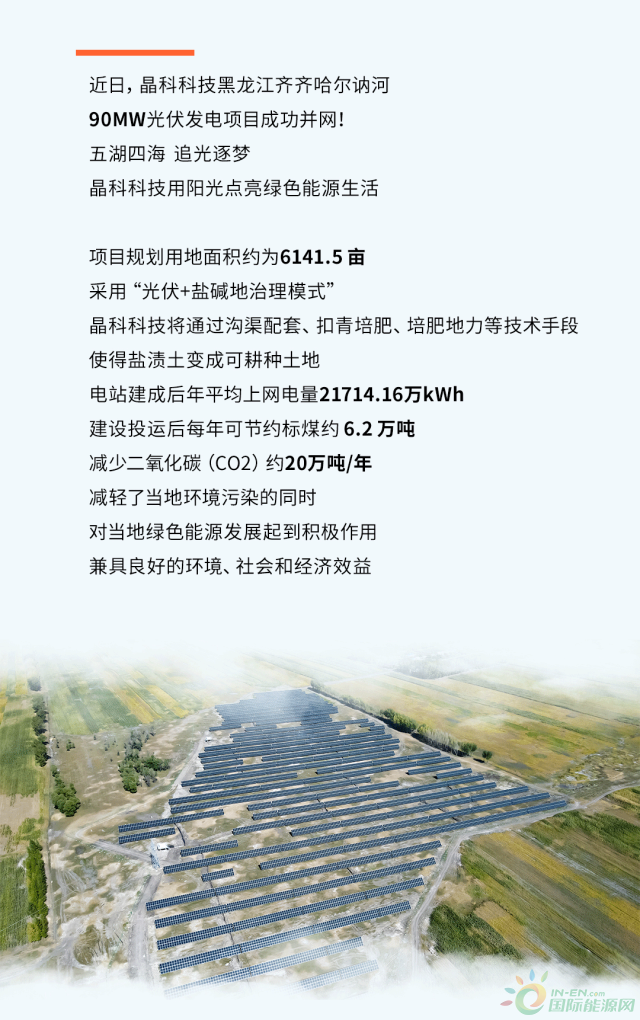 開門紅!晶科科技訥河90MW光伏發(fā)電項(xiàng)目發(fā)來并網(wǎng)“賀電”